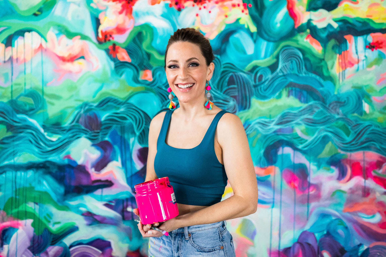 Julie Amlin is a Toronto-based artist and muralist who aims to shake off the dust of predictability and create an invitation for fun and reflection within her work. She hopes to awaken our collective inner child and inspire a renewed experience of exploration through curiosity and intentional joy.