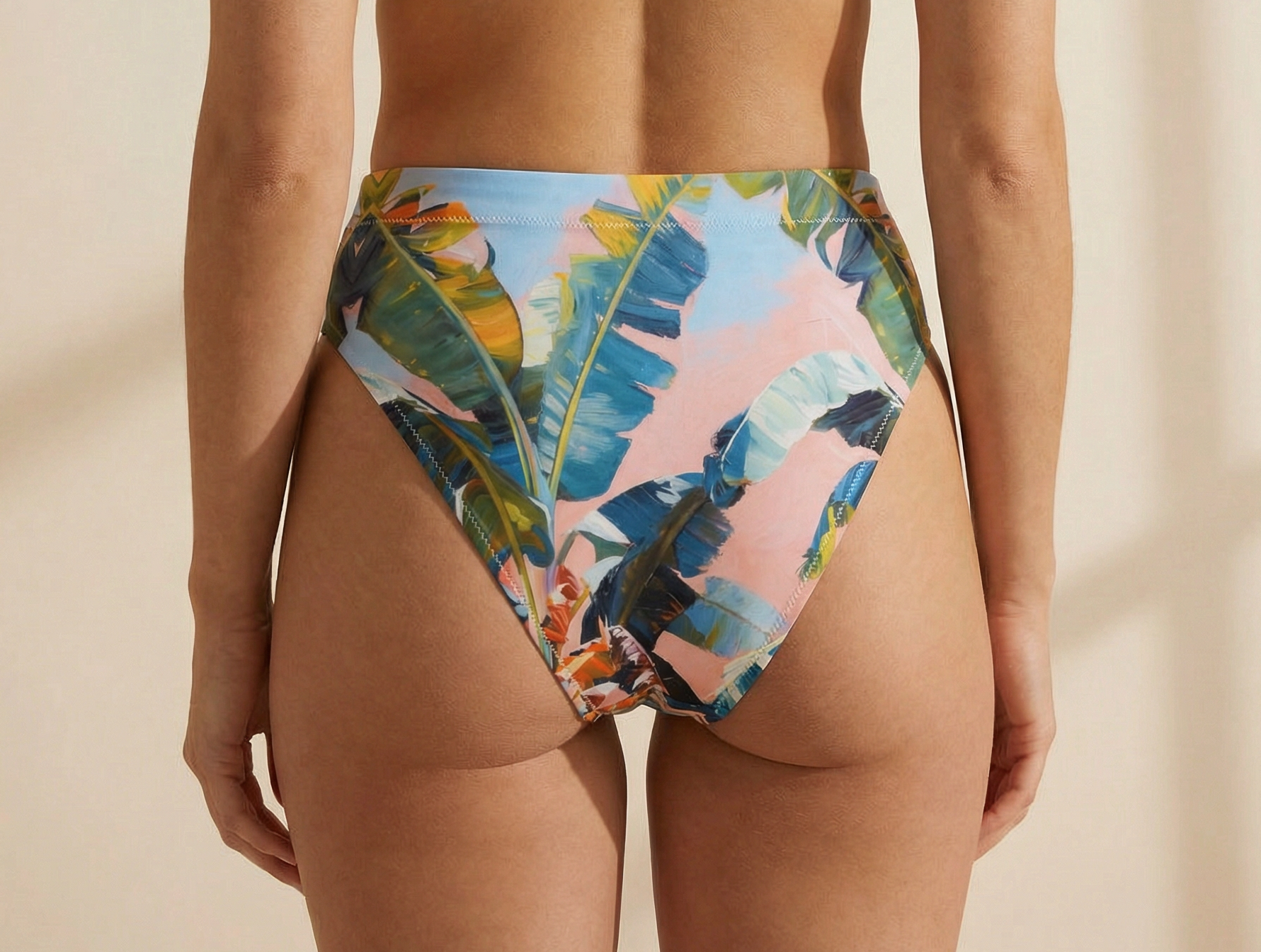 Get this Recycled high-waisted bikini bottom and match it with your favorite swimsuit top. It’s comfortable, high-waisted, and double-layered—perfect for an adventurous beach day or a chill spa visit!