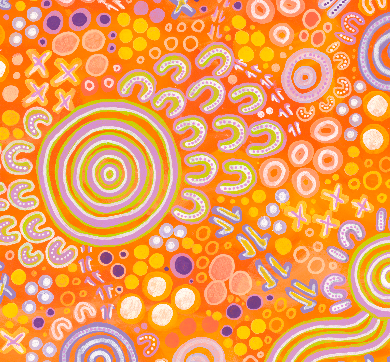 This artwork beautifully illustrates the journey of young children as they come together to learn the significance of the Country they are on. Through its vivid colours and intricate designs, this piece of art is a powerful reminder of how crucial it is for young minds to learn about and respect the historical and cultural significance of the land they are on, laying a foundation for lifelong respect and stewardship.